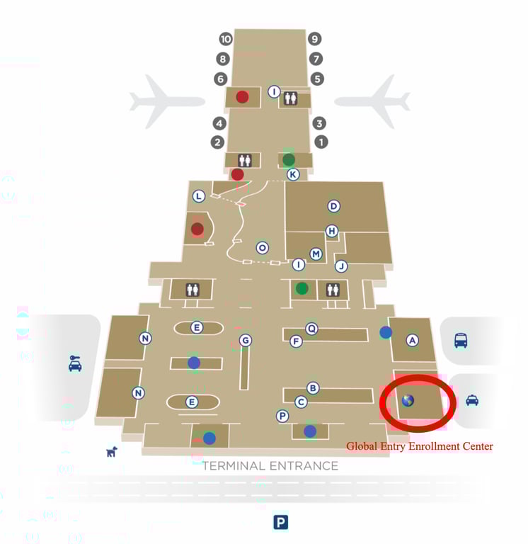 The Global Entry Enrollment Center at SGF is located on the main terminal level, before TSA security. Ask at the information desk if you're unsure where to go—they’ll direct you to the correct location.View SGF’s Interactive Terminal Info
